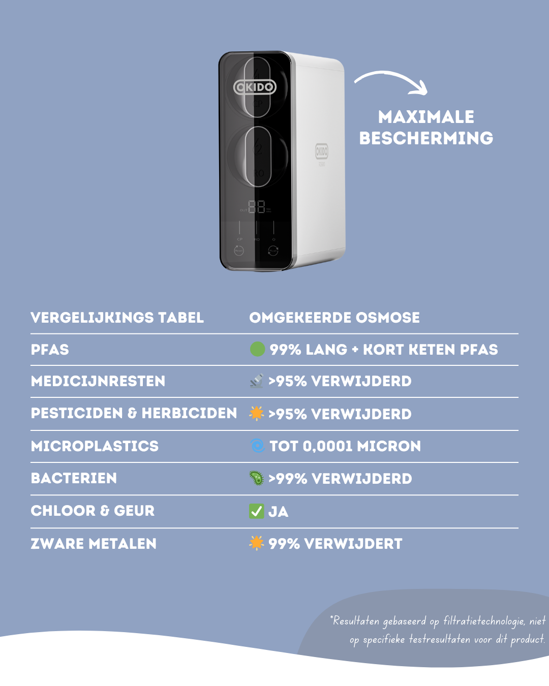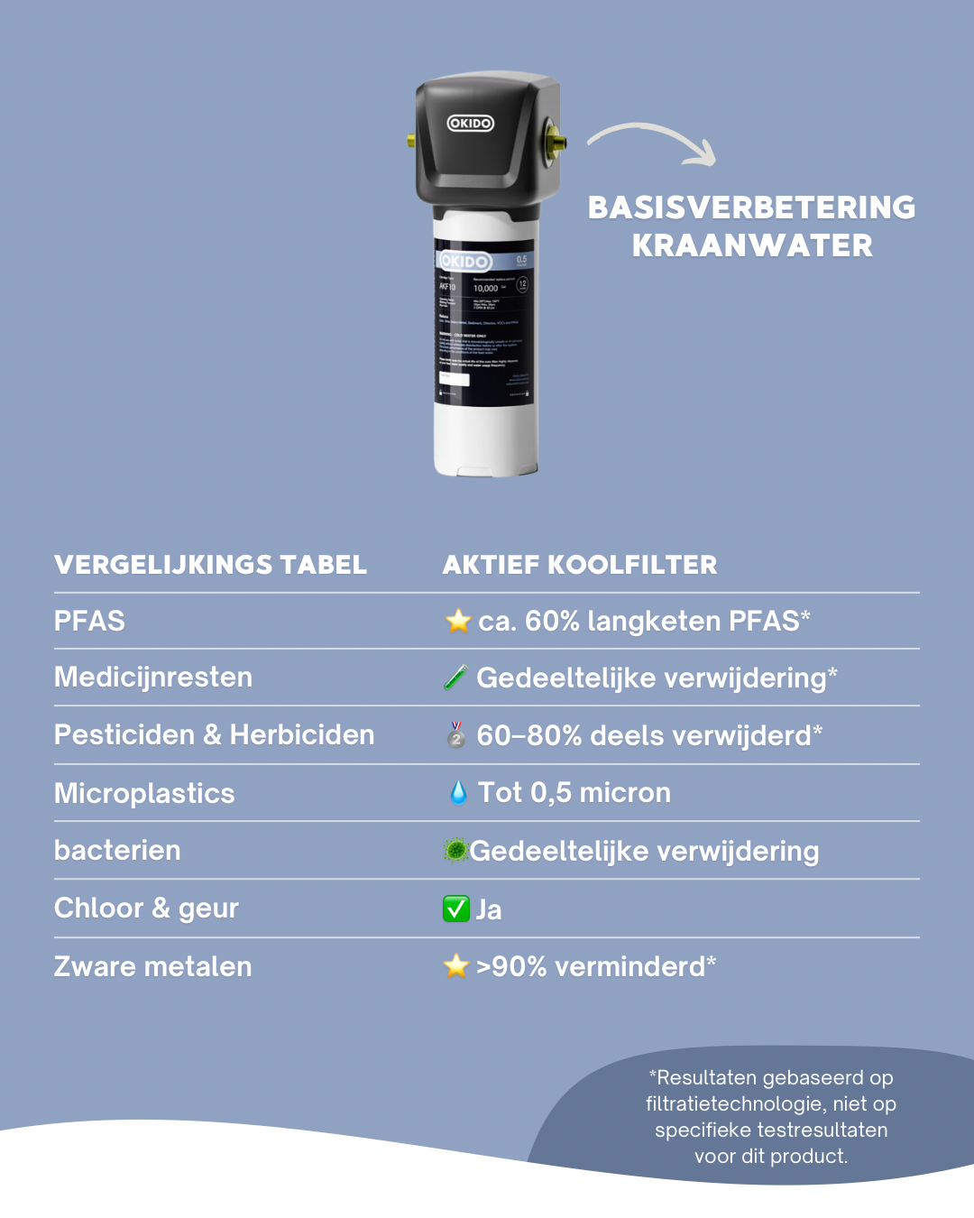 ✅ >99% verwijdering van PFOA en PFOS (PFAS)